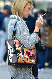 Smoking in black platform wedges