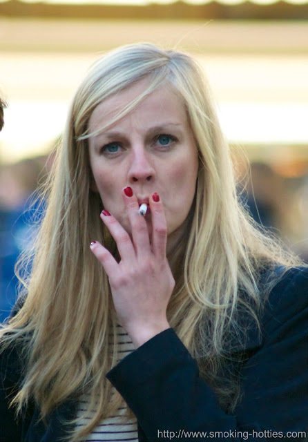 Tall brunette on a smoke break in boots