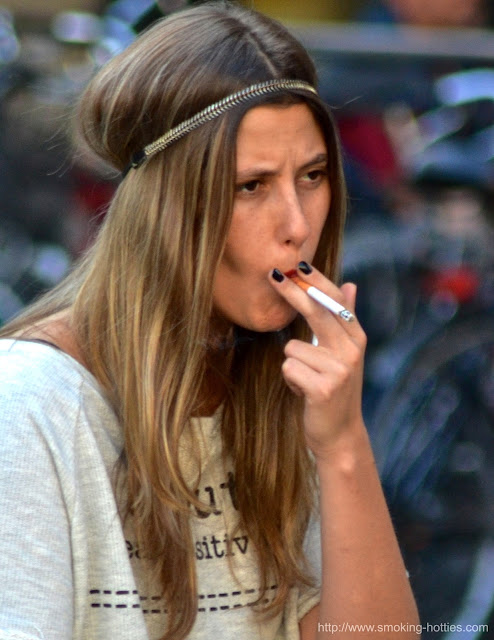 Tall brunette on a smoke break in boots